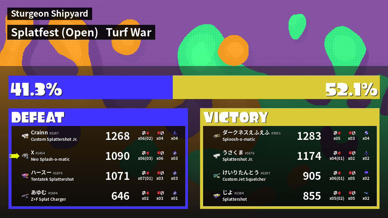 | Medals | #1 Splat Assister #1 Base Defender #2 Overall Splatter | ||