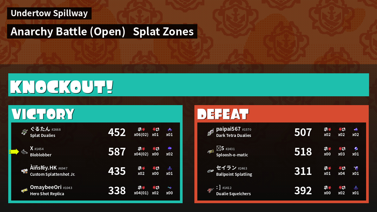| Mode | Splat Zones - Anarchy Battle (Open) | ||