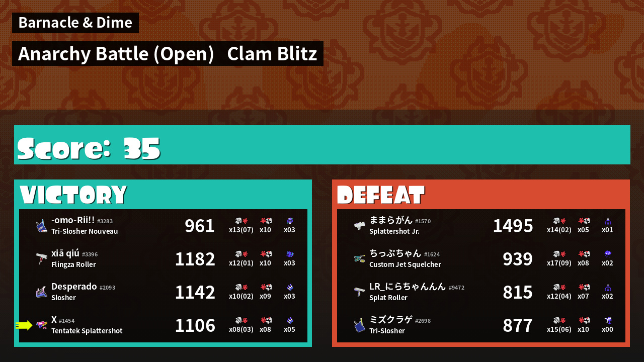 | Mode | Clam Blitz - Anarchy Battle (Open) | ||