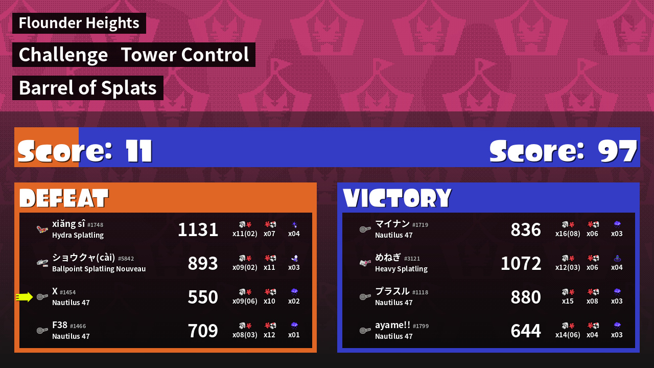 | Challenge | Barrel of Splats Muster as much firepower as you can<br />in this battle of the splatlings! | ||