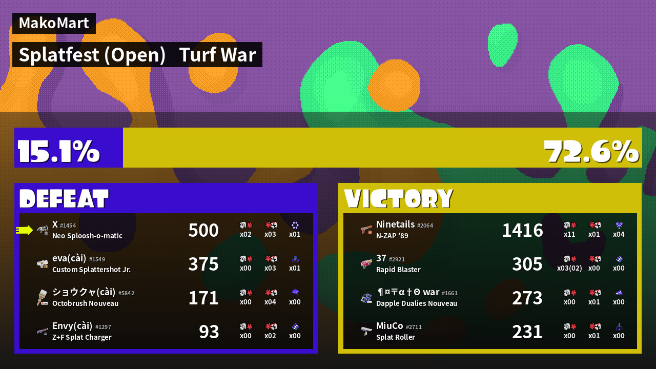 | Medals | #1 Overall Splatter #1 Turf Inker #1 Enemy-Base Inker | ||