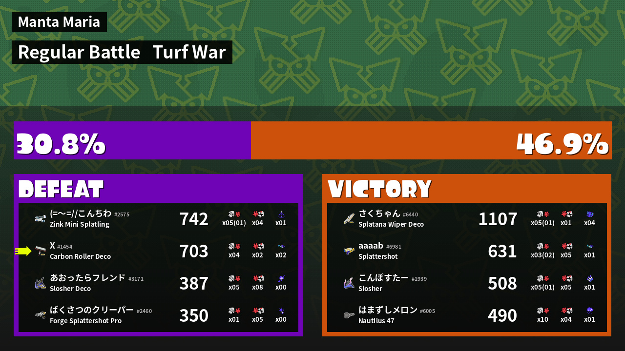 | Mode | Turf War - Regular Battle | ||