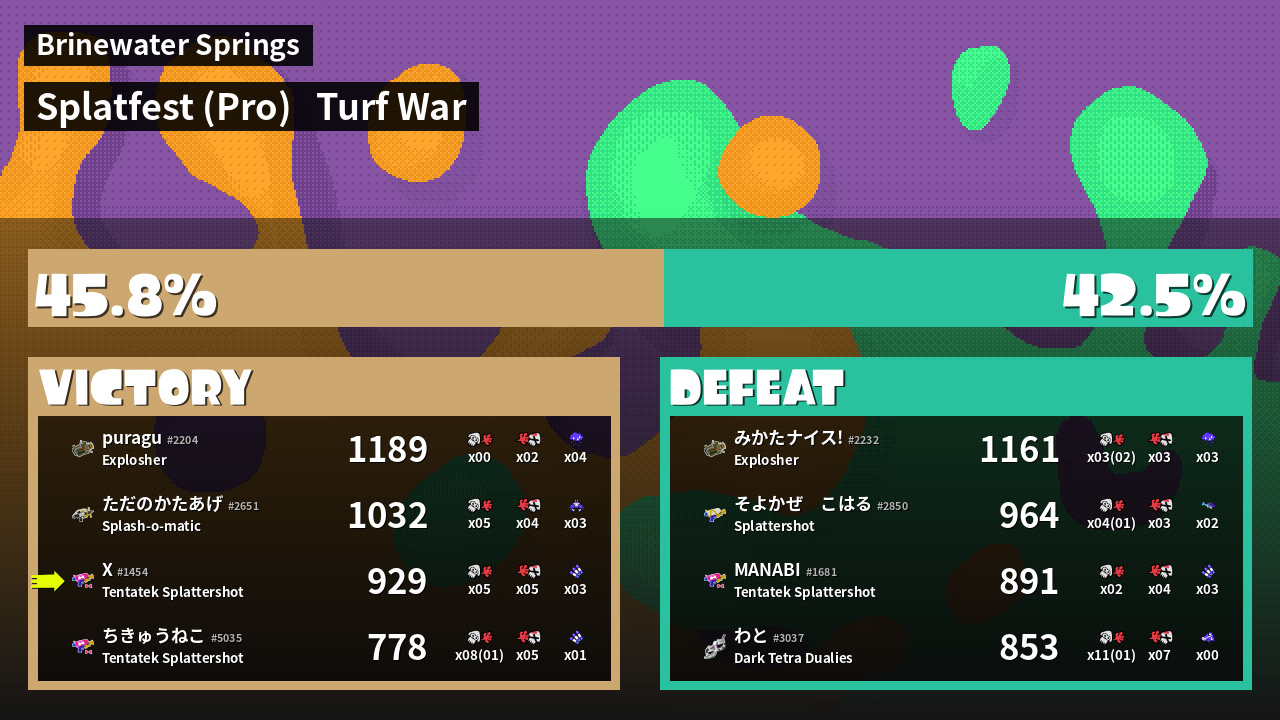 | Mode | Turf War - Splatfest (Pro) | ||