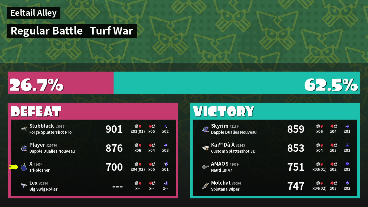 | Medals | #1 Enemy-Base Inker #1 Splat Assister #1 Ground Traveler | ||