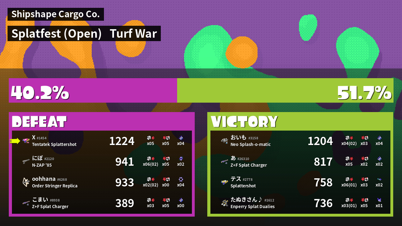 | Medals | #1 Turf Inker #1 Enemy Splatter #1 Ink Consumer | ||
