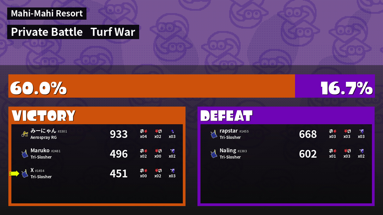 | Mode | Turf War - Private Battle | ||