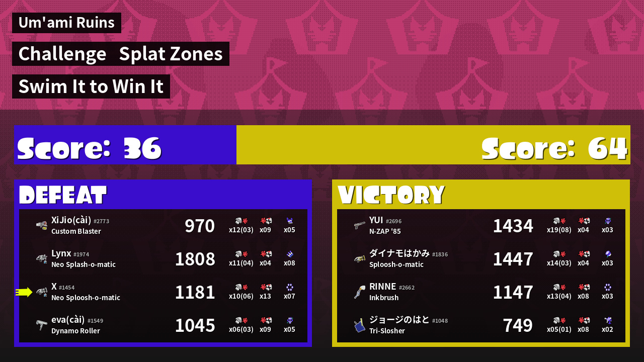 | Medals | #1 Splat Zone Inker #1 Splat Assister #1 Killer Wail 5.1 User | ||
