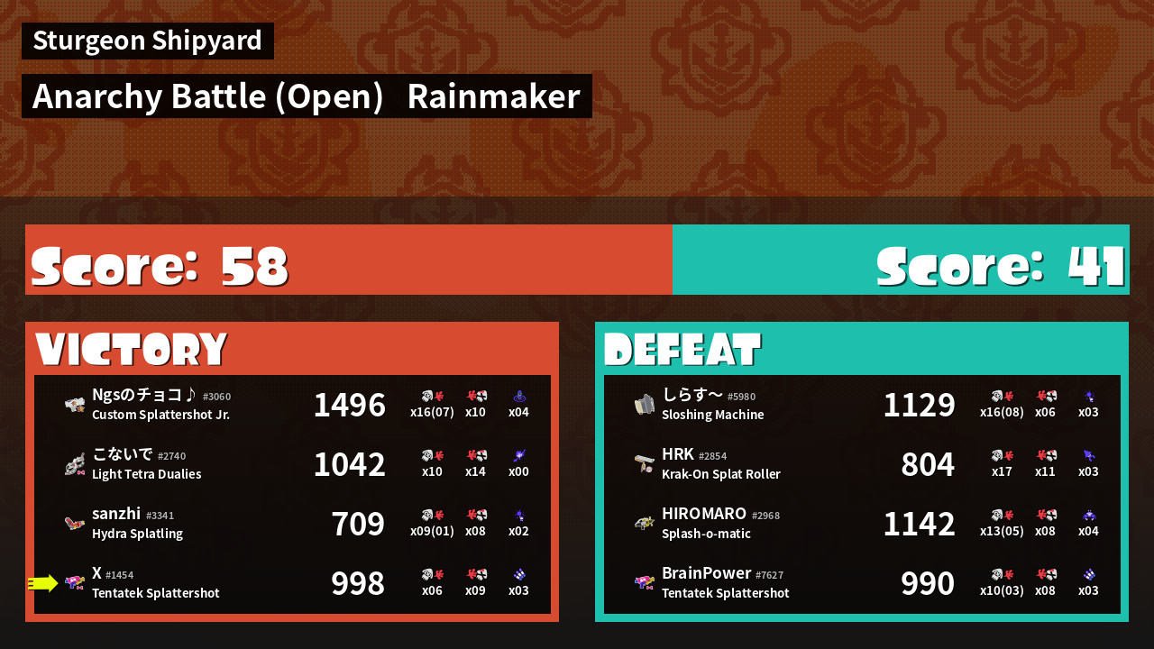 | Mode | Rainmaker - Anarchy Battle (Open) | ||
