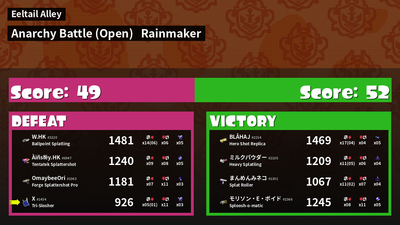 | Mode | Rainmaker - Anarchy Battle (Open) | ||