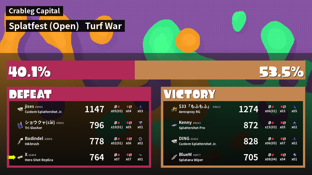 | Mode | Turf War - Splatfest (Open) | ||