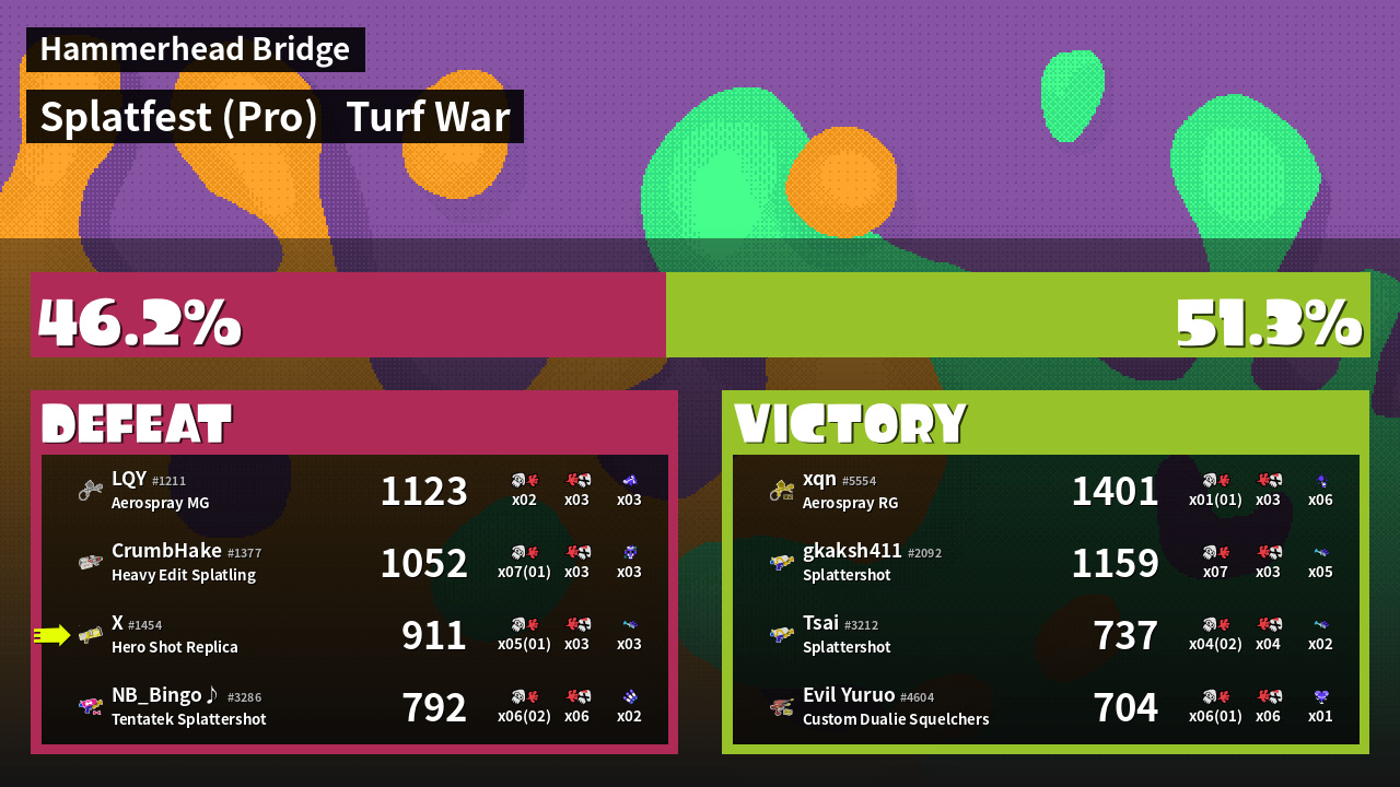 | Medals | #1 Damage Taker #1 Ink Consumer First Splat! | ||