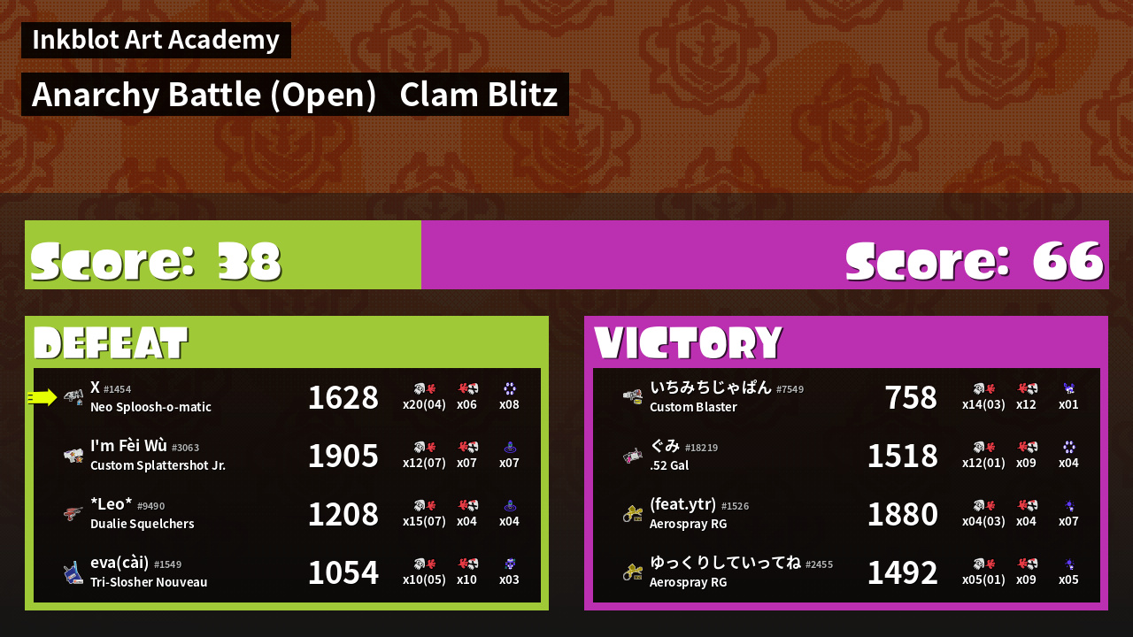 | Mode | Clam Blitz - Anarchy Battle (Open) | ||