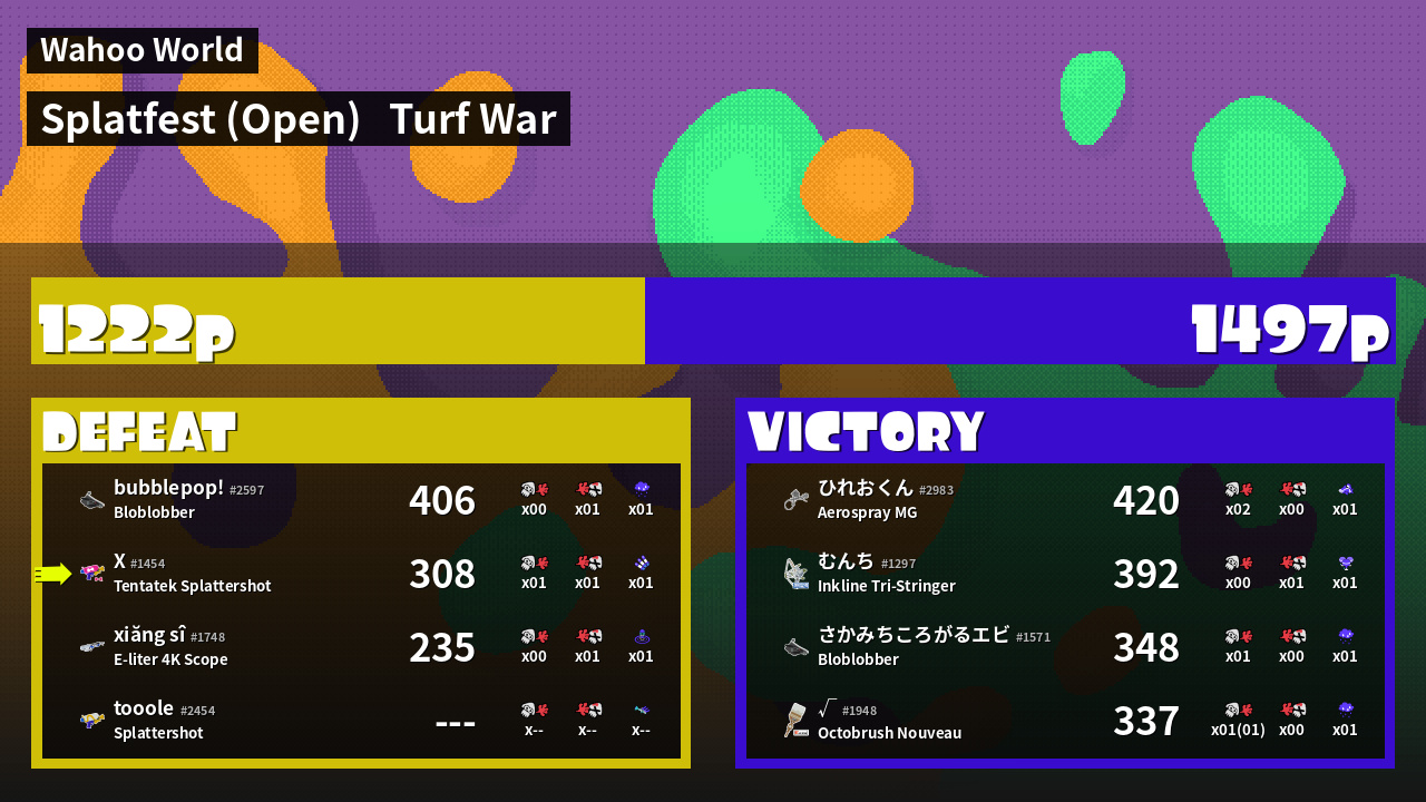 | Weapon | Tentatek Splattershot ( Splat Bomb / Triple Inkstrike) | ||