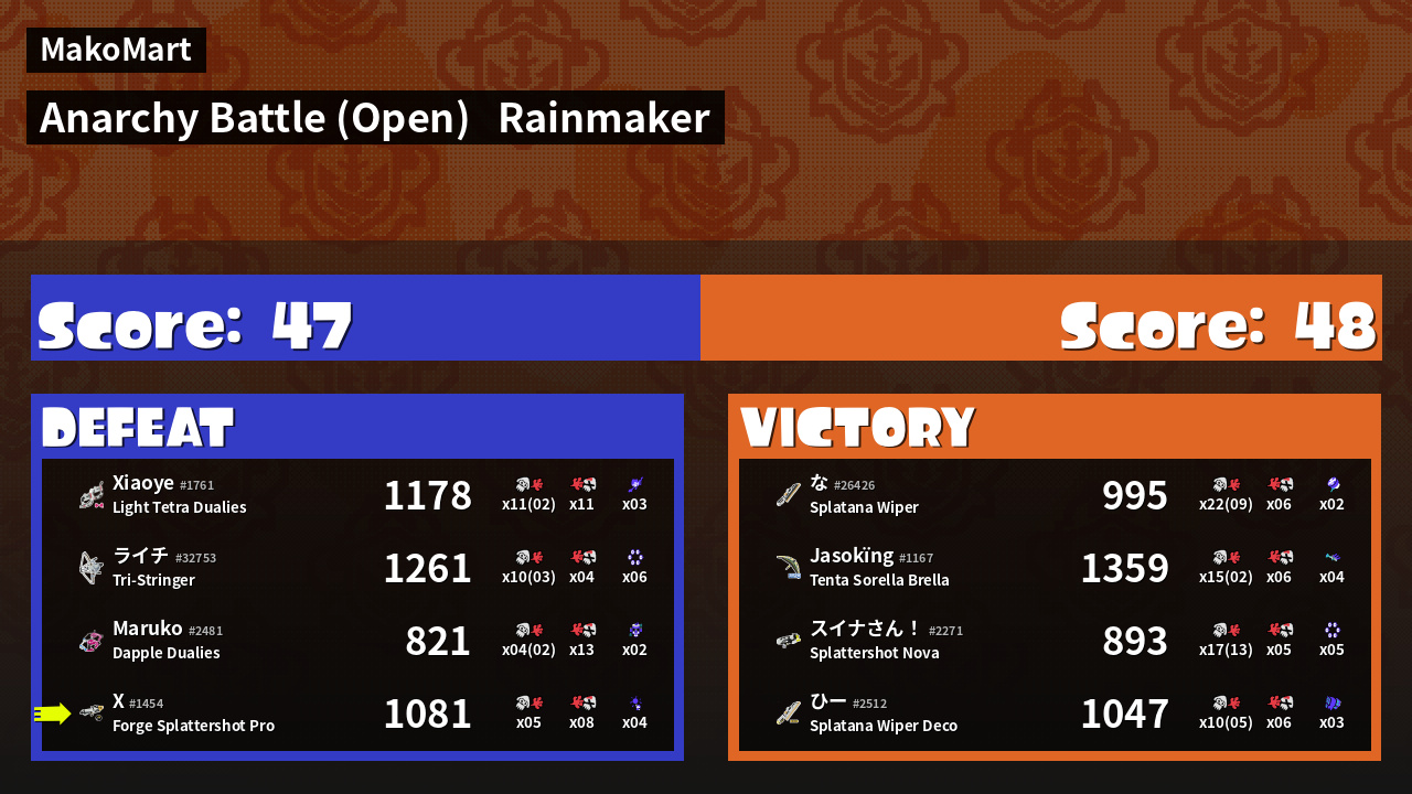 | Mode | Rainmaker - Anarchy Battle (Open) | ||
