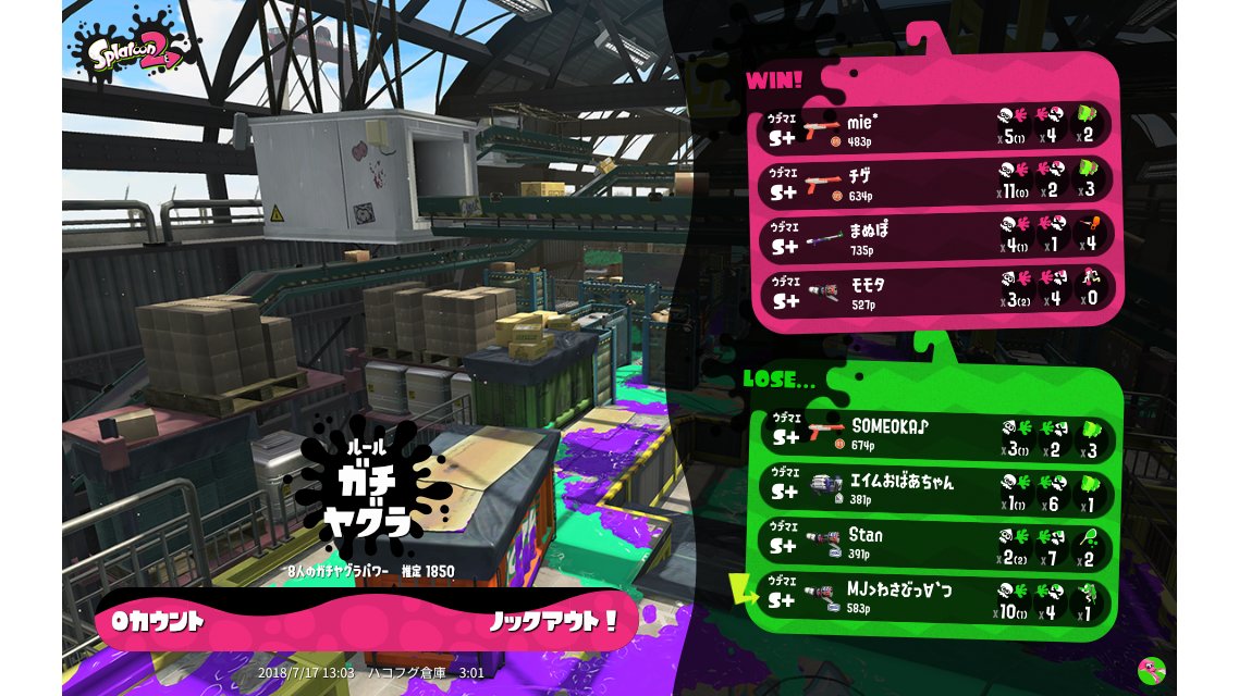 | Name | Weapon | Level | Rank | Inked | k+a/sp | k/d |