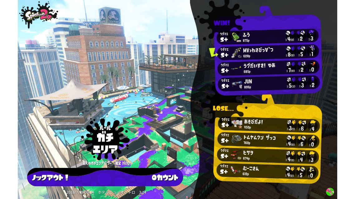 | Mode | Splat Zones - Ranked Battle | ||||||||||||||||||||||||||||||||||