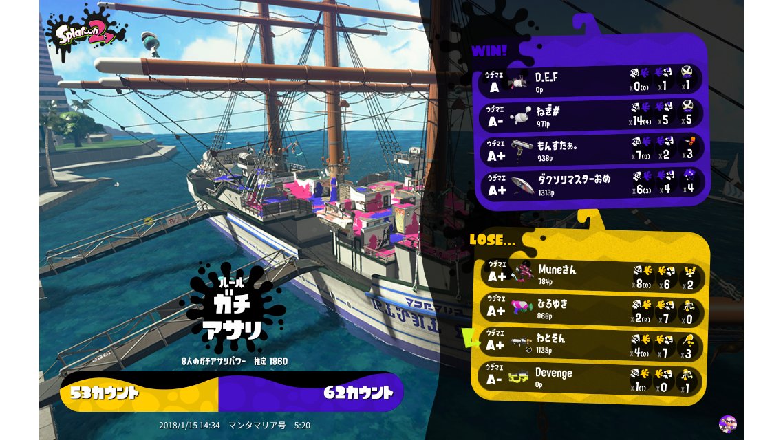 | Name | Weapon | Level | Rank | Inked | k+a/sp | k/d |