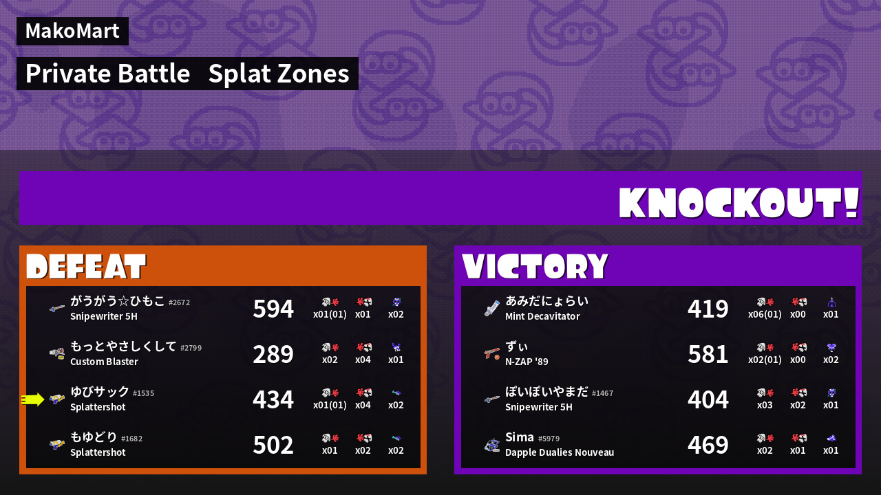 | Medals | #1 Splat Assister #2 Overall Splatter #2 Popular Target |