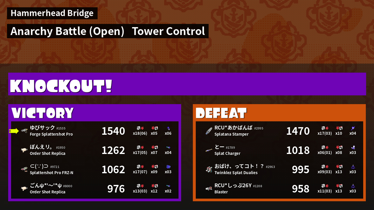 | Mode | Tower Control - Anarchy Battle (Open) |