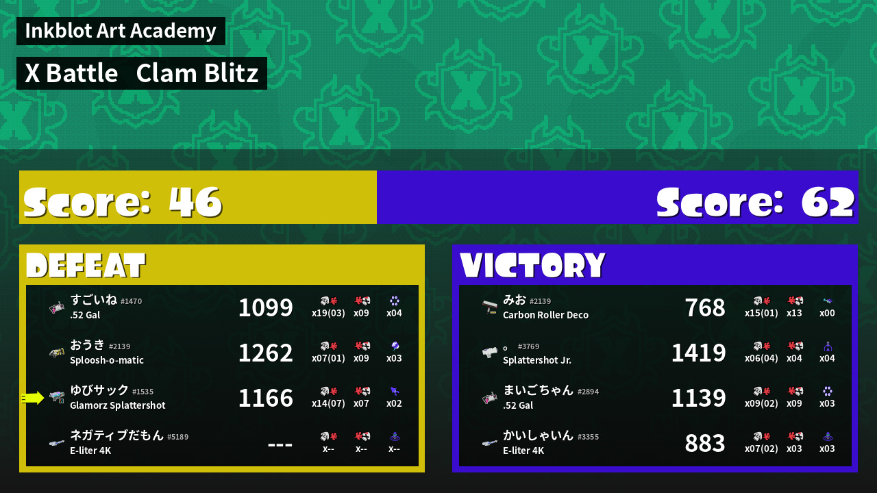 | Medals | #1 Splat Assister #1 Ink Consumer #2 Overall Splatter |