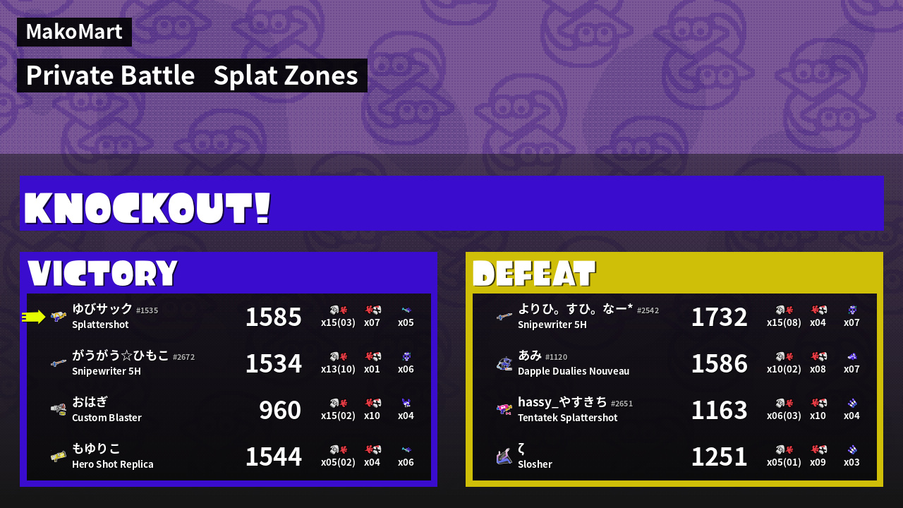 | Medals | #1 Overall Splatter #1 Splat Zone Guard #1 Turf Inker |
