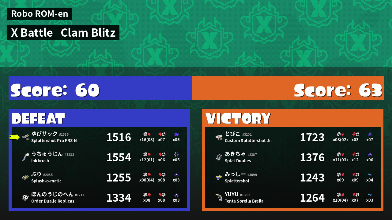 | Mode | Clam Blitz - X Battle |