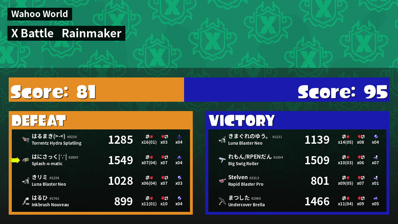 | Mode | Rainmaker - X Battle |