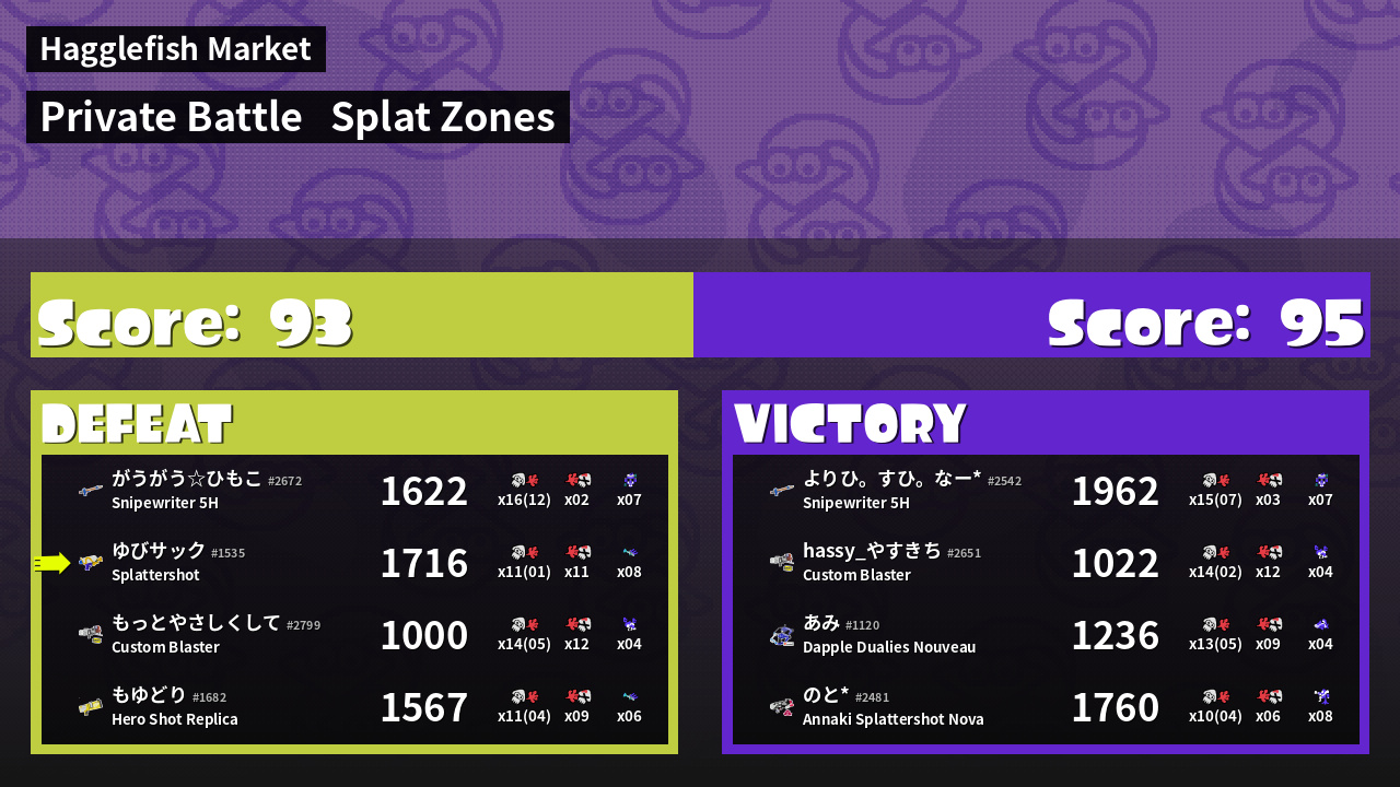 | Medals | #1 Splat Zone Guard #1 Turf Inker #1 Enemy Splatter |