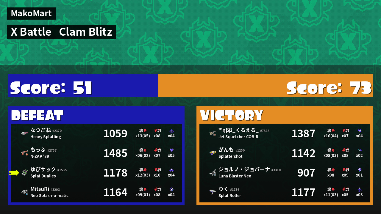 Results of ゆびサック's Battle