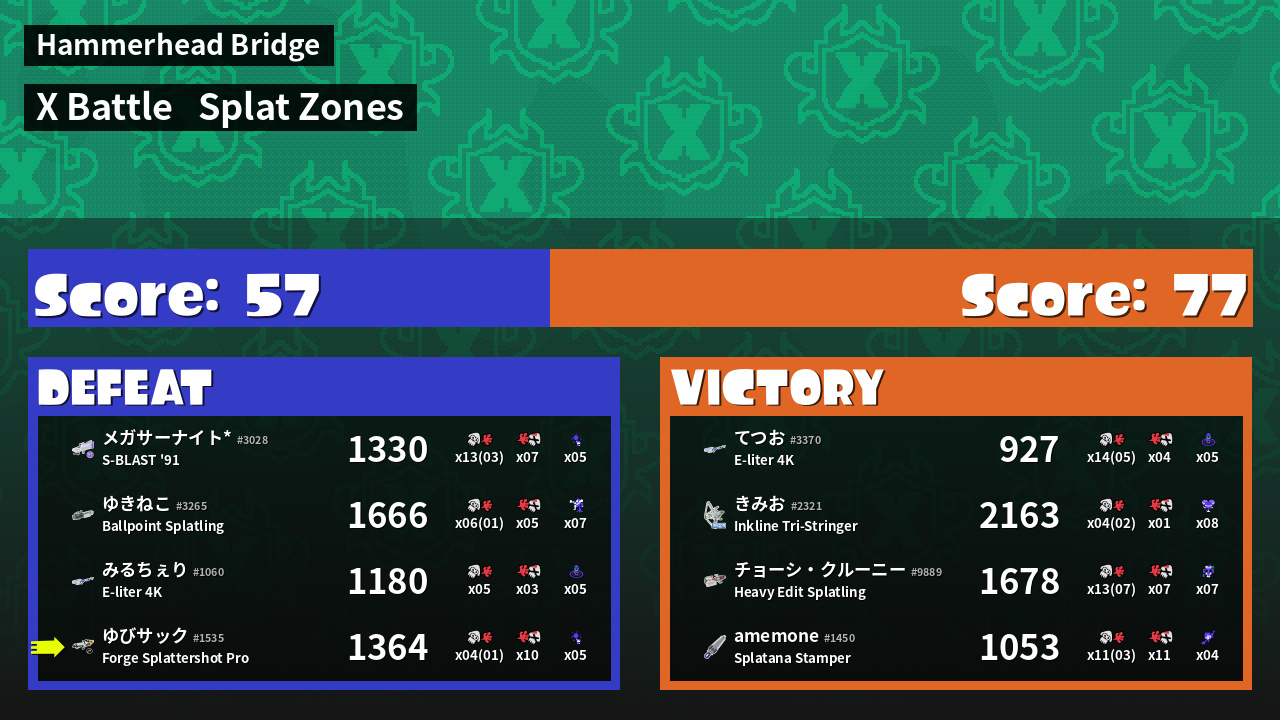 | Mode | Splat Zones - X Battle |