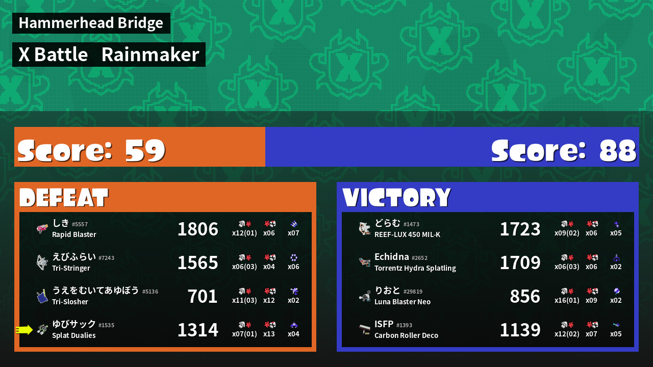 | Weapon | Splat Dualies ( Suction Bomb / Crab Tank) |