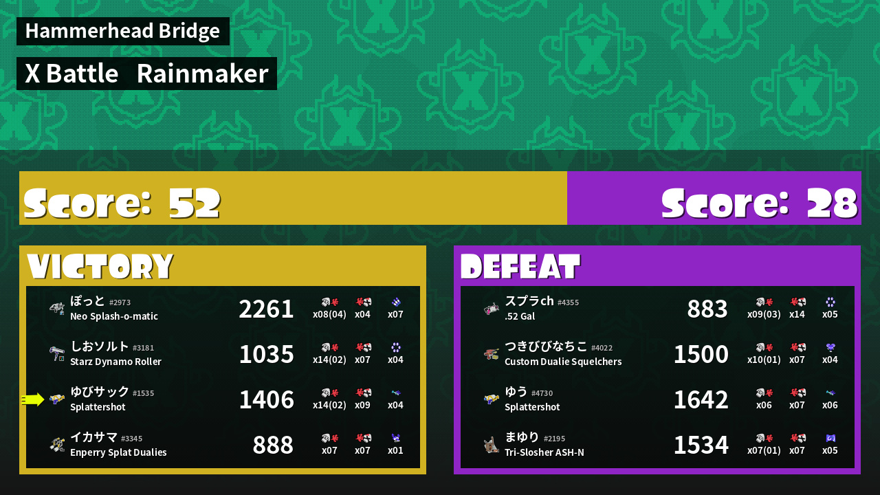 | Mode | Rainmaker - X Battle |