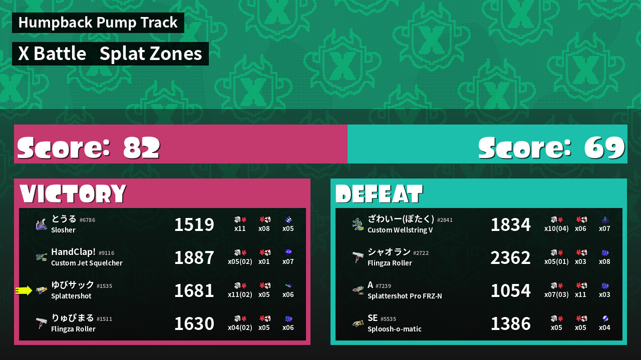 | Medals | #1 Overall Splatter #1 Splat Assister #1 Trizooka User |