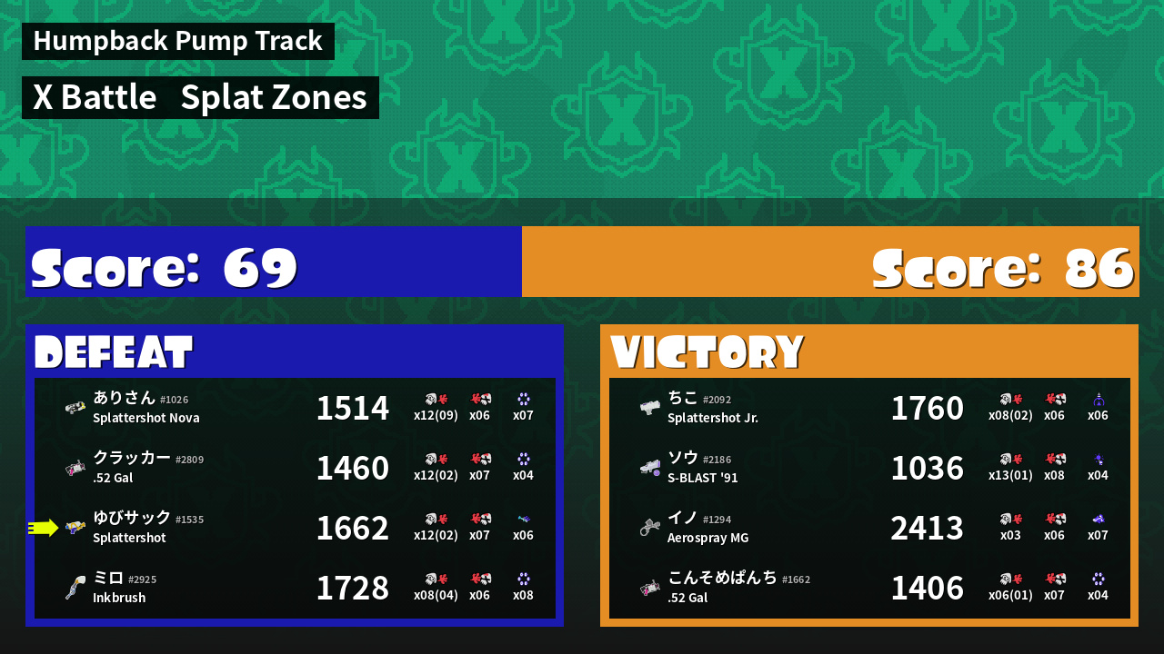 | Mode | Splat Zones - X Battle |