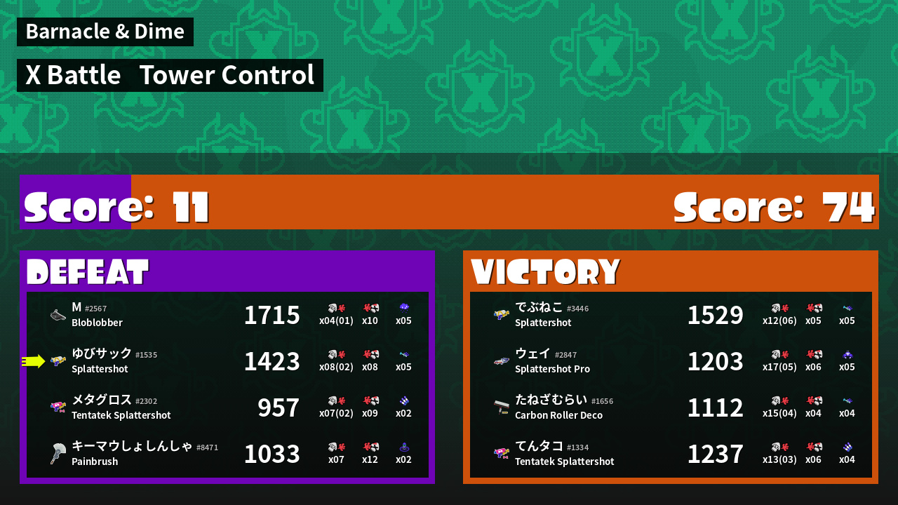 Results of ゆびサック's Battle