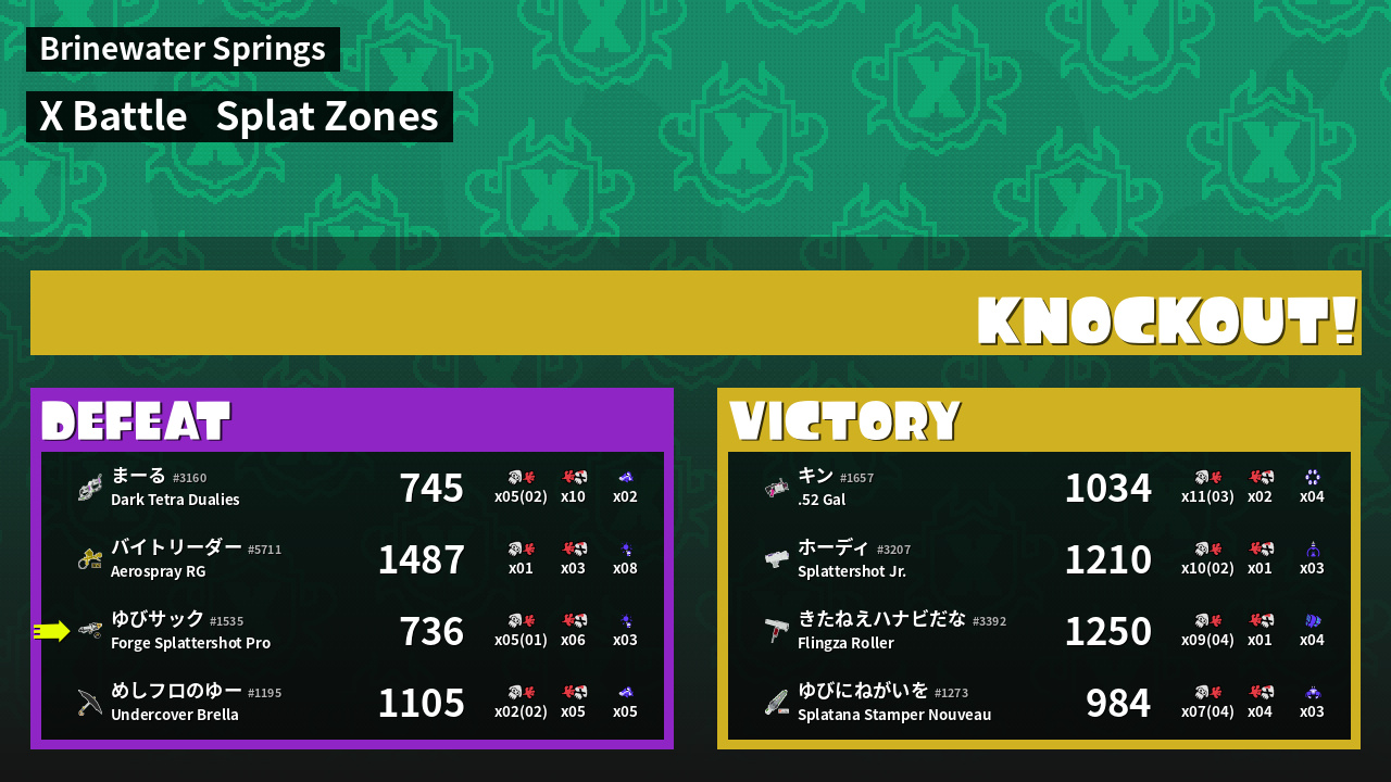 | Medals | #1 Overall Splatter #1 Enemy Splatter #1 Ink Consumer |