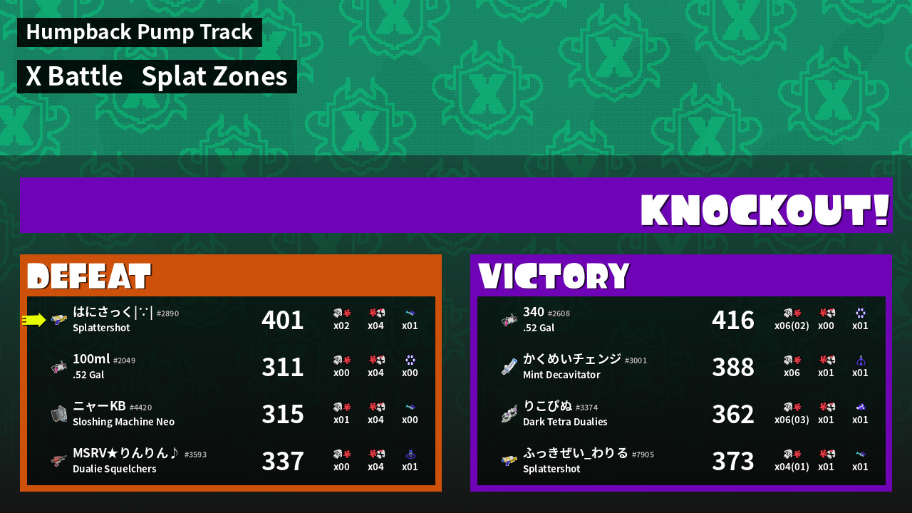 | Mode | Splat Zones - X Battle |
