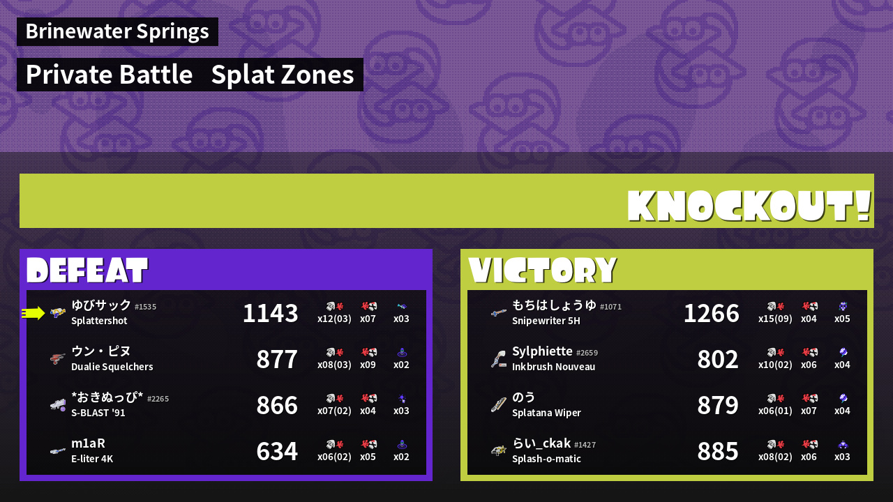 | Mode | Splat Zones - Private Battle |
