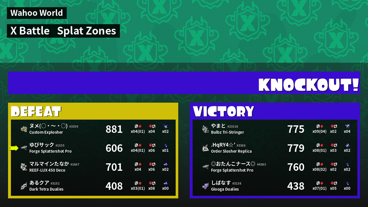 | Mode | Splat Zones - X Battle |