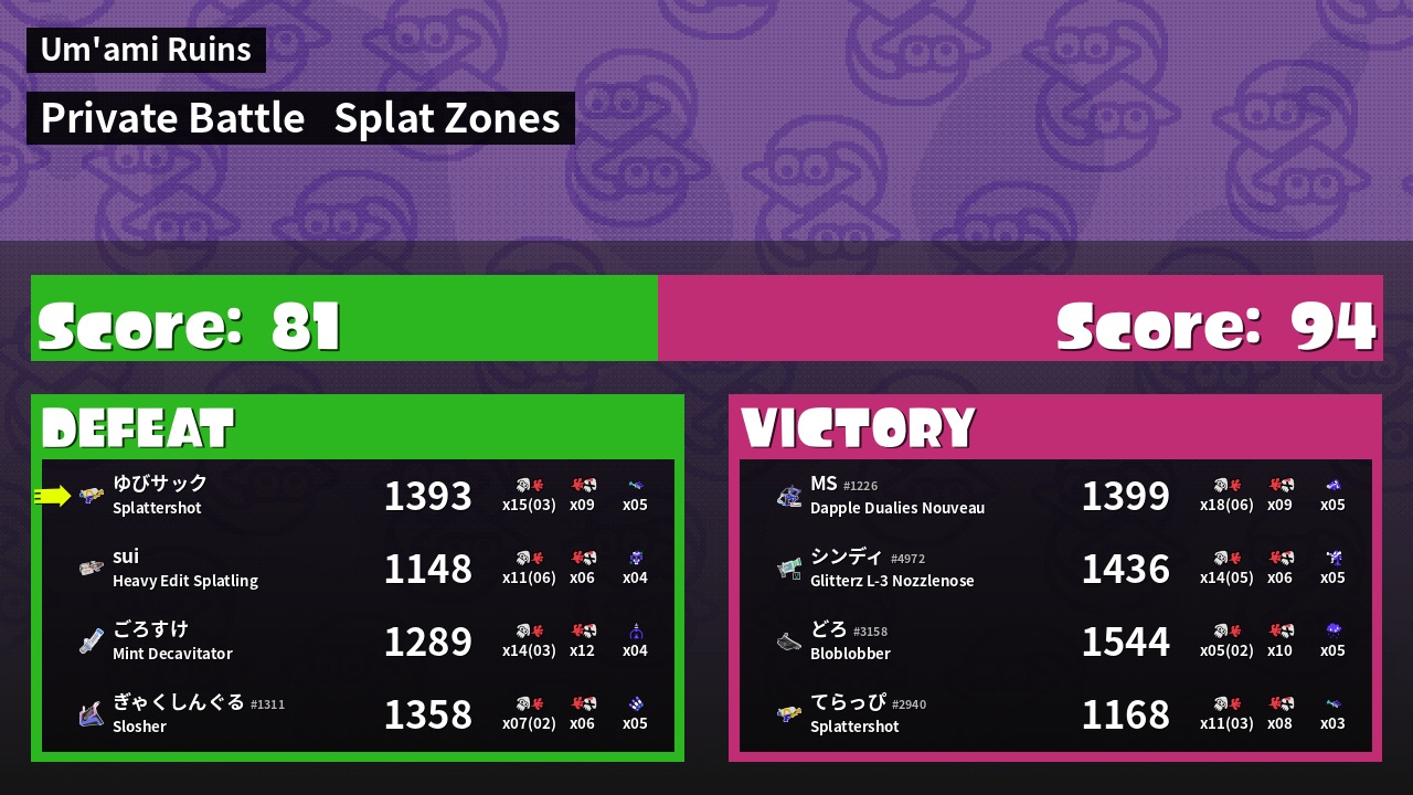 | Medals | #1 Overall Splatter #1 Turf Inker #1 Popular Target |