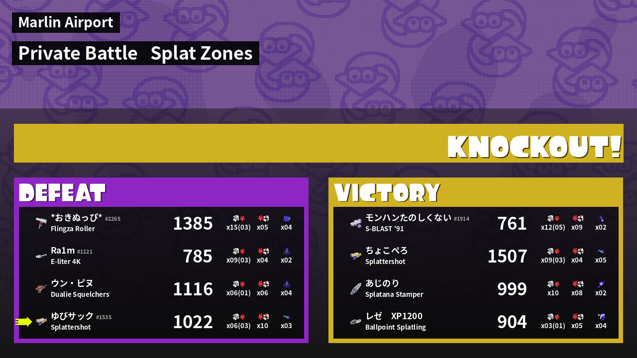 | Medals | #1 Splat Assister #1 Ink Consumer #2 Super Jump Spot |