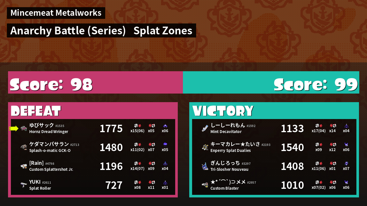Name | Weapon | Inked | ![]() |