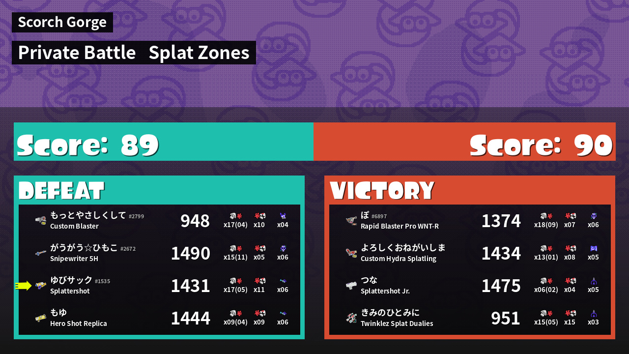 | Mode | Splat Zones - Private Battle |