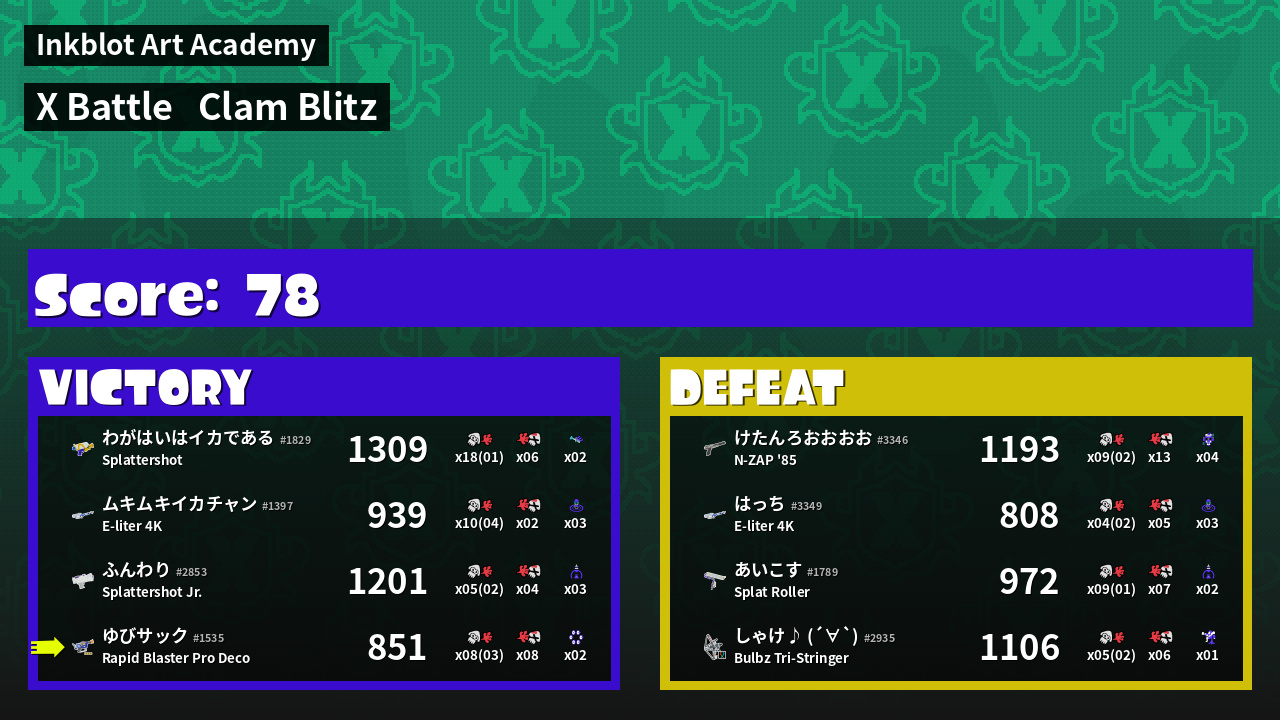 | Medals | #1 Killer Wail 5.1 User #2 Splat Assister |