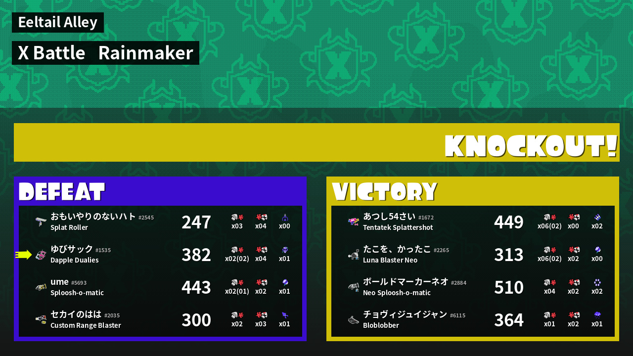 | Medals | #1 Super Jump Spot #1 Splat Assister #1 Rainmaker Carrier |