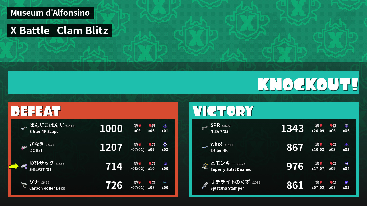 | Medals | #1 Splat Assister #2 Overall Splatter #2 Score Booster |