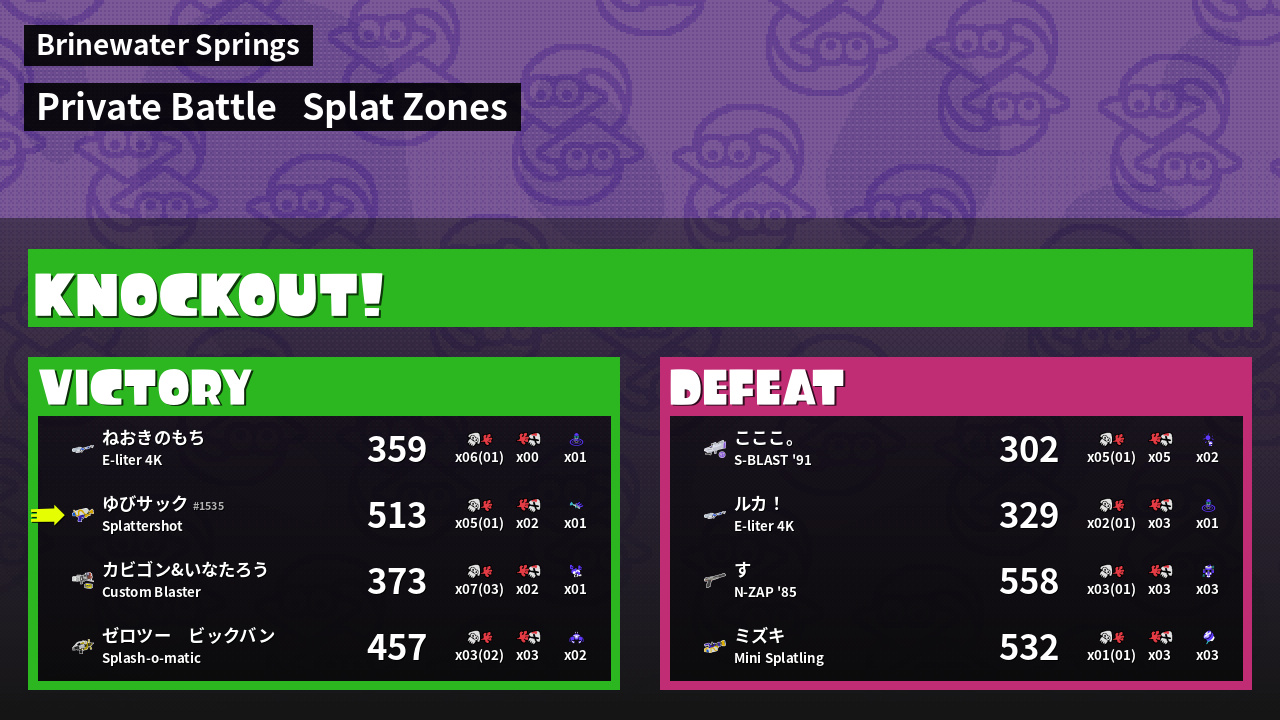 Results of ゆびサック's Battle