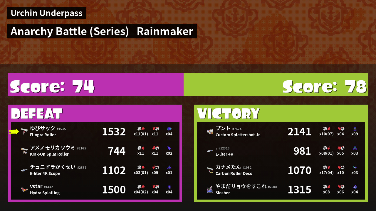 Results of ゆびサック's Battle