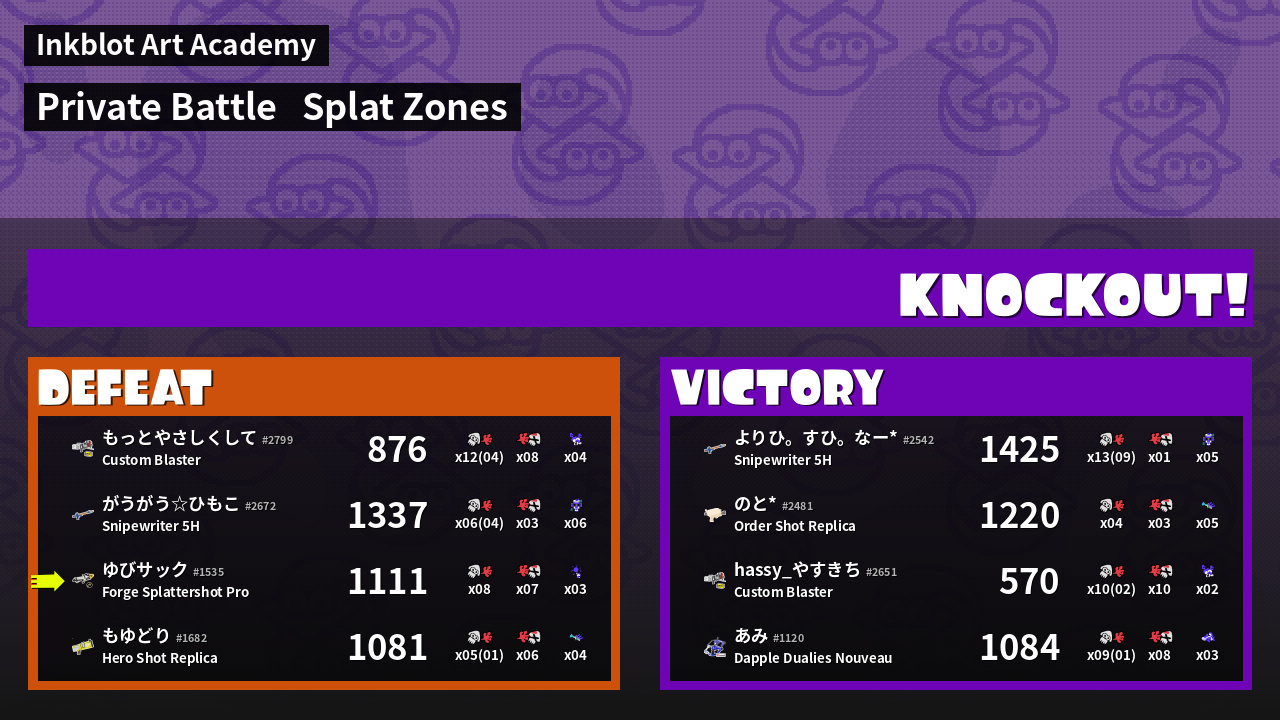 | Medals | #1 Enemy Splatter #1 Splat Zone Hero #1 Ink Consumer |