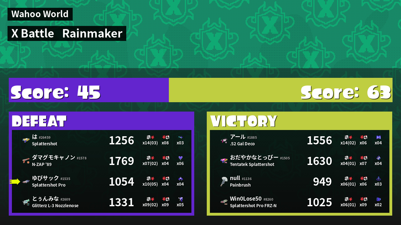 Results of ゆびサック's Battle